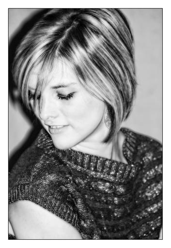 Keywords: girl pretty close-up cute portrait looking down black and white
