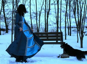 Keywords: girl princess dog snow blue dress nice