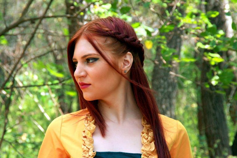Keywords: girl princess yellow autumn leaves dress forest