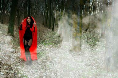 Keywords: girl red sensual smoke the haze forest red riding hood