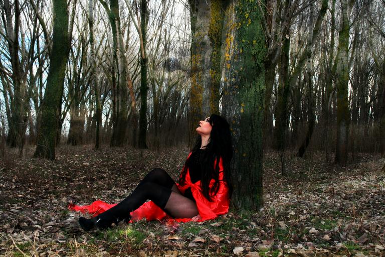 Keywords: girl red sensual smoke the haze forest red riding hood
