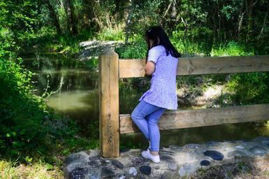 Keywords: girl walking looking at the water admiring thoughtful landscape