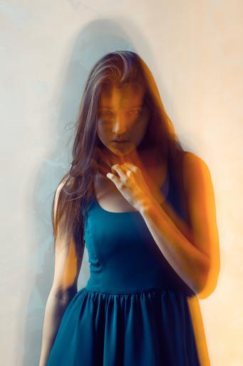 Keywords: girl wall lily dress blue blur fashion woman pretty
