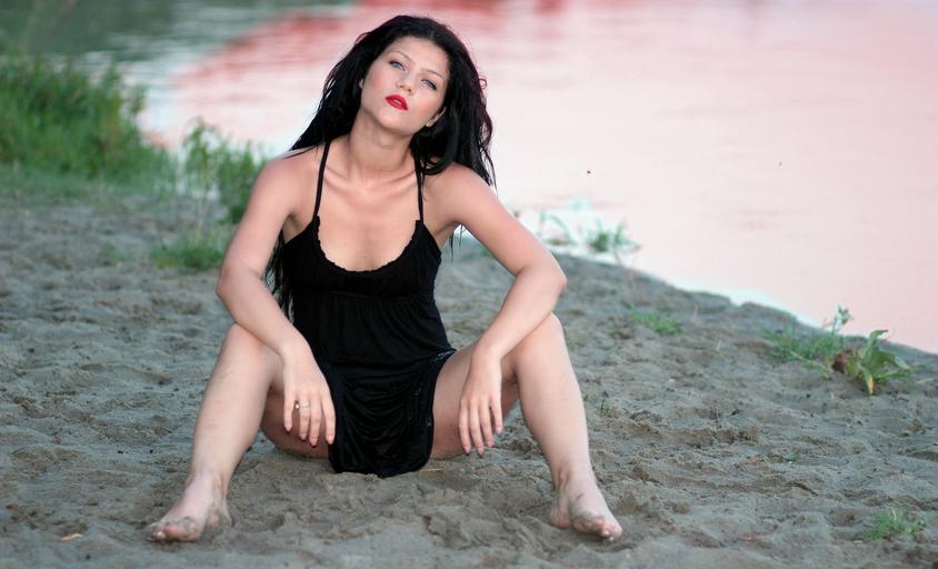 Keywords: girl water beach wild black hair blue eyes beauty sensual