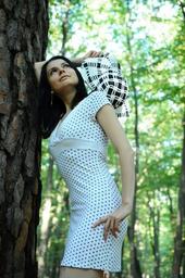 Keywords: girl woman female dress white hat nature young forest black hair model fashion