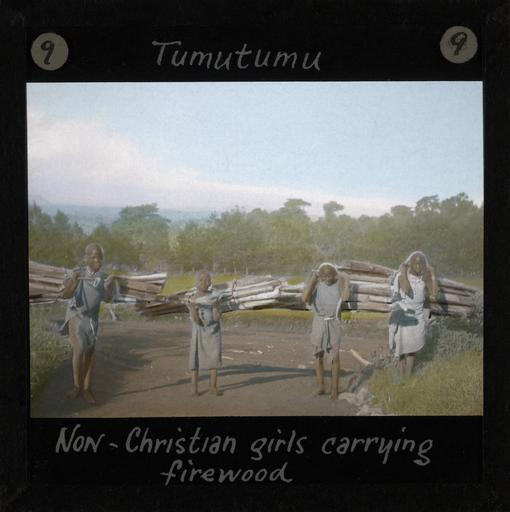| Keywords: Girls Carrrying Firewood, Tumutumu, Kenya, ca.1905-ca.1940 (imp-cswc-GB-237-CSWC47-LS7-009).jpg en <br> Girls Carrrying Firewood Tumutumu Kenya ca 1905-ca 1940 aNon-Christian girls carrying firewood Photograph of four girls carrying large bundles of firewood The wood is supported by a strap over the head or shoulders ; This belongs to a series of Church of Scotland Foreign Missions Committee lantern slides relating to the Kikuyu Mission in Kenya which was set up by Church of Scotland missionaries Hospitals were established by Scottish missionaries in Kikuyu in 1908 in Tumutumu in 1909 and in Chogoria in 1922 The missionaries also introduced the Presbyterian Church to the area The Kikuyu are Kenyaas most populous ethnic group Photographer Unknown Filename imp-cswc-GB-237-CSWC47-LS7-009 tif Coverage date 1905/1940 Part of collection International Mission Photography Archive ca 1860-ca 1960 Type images Part of subcollection Photographs from the Centre for the Study of World Christianity University of Edinburgh U K ca 1900-ca 1940s Repository name Centre for the Study of World Christianity Archival file impaunpub_Volume7/1622 url Repository address The University of Edinburgh School of Divinity New College Mound Place Edinburgh EH1 2LX United Kingdom Geographic subject country Kenya Format aacr2 1 lantern slide 8 x 8 cm Geographic subject continent Africa Rights Contact the repository for details Part of series Kenya Mission LS7 Repository email divinity-CSWC ed ac uk Subject lcsh Keyword Lifting and carrying; Women; Fuelwood Date created 1905/1940 Publisher of the digital version University of Southern California Libraries Subject aat genre group portraits Format aat lantern slides Legacy record ID impa-m68726 Access conditions http //www ed ac uk/schools-departments/divinity/research/centres/world-christianity/collections-resources File GB 237 CSWC47/LS7/9 1905/1940 author http //digitallibrary usc edu/cdm/ref/collection/p15799coll123/id/64742 PD-old-70-1923 Magic lantern images Images from USC Digital Library uploaded by Fæ International Mission Photography Archive ca 1860-ca 1960 |