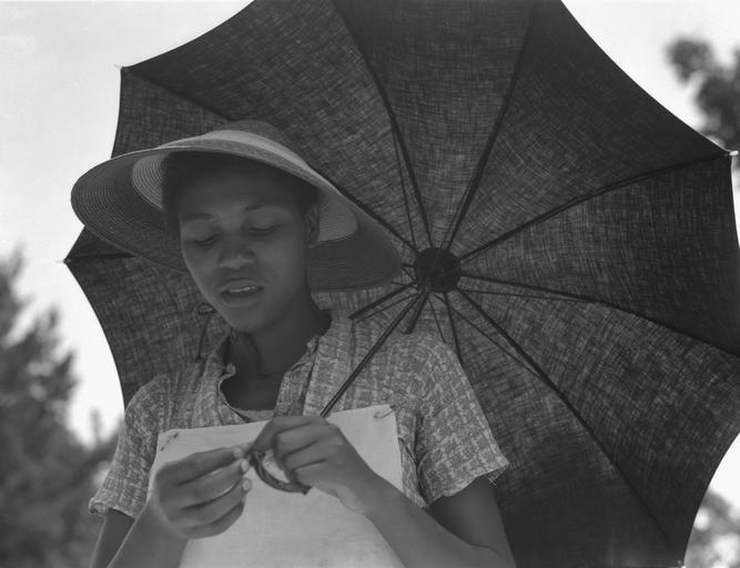 | Keywords: GirlWithUmbrella1937Lange.jpg Young woman with umbrella Louisiana 1937 Original title Louisiana Negress Photo by Dorothea Lange for Farm Security Administration/WPA via http //hdl loc gov/loc pnp/fsa 8b32173 1937-07 Creator Dorothea Lange PD-USGov African Americans in art 1937 African American history of the 1930s 1937 Women of the United States 1937 People of Louisiana Fashion in 1937 Dorothea Lange 1937 in Louisiana Females with umbrellas Black and white photographs of females with hats Women facing left 1937 Black and white portrait photographs of women of the United States 1937 Adolescent girls in the United States 1937 |