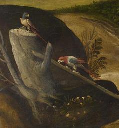| Keywords: Girolamo da Santacroce - The Adoration of the Three Kings - Walters 37261 - Detail C.jpg Walters Art Museum artwork Q18748566 Creator Girolamo da Santacroce detail <br> Three wise men or magi from the East are described in the Gospels as having seen a new star and journeyed to pay tribute to the child marked as divine by the heavens The wise men were often depicted as kings and by the Renaissance the youngest was frequently depicted as an African here holding a gold vessel containing myrrh a precious resin from Arabia and Africa used for perfume His portrayal reflects both the ethnic diversity encountered by Renaissance painters in a port like Venice frequented by African traders and also the concept of Christ's promise of salvation for all people The splendor of the kings contrasts with the simplicity of the Holy Family Chubby little angels sing the words inscribed on the scroll Glory to God in Heaven and Peace to Men on Earth accompanied by others playing flutes and a violin Zeri Italian paintings in the Walters Art Gallery 276 403-404 ca 1525 1530 Renaissance oil on panel Painted surface incl strip at bottom; d is excl cradle H 26 5/8 x W 31 15/16 x D 5/16 in 67 7 x 81 2 x 0 8 cm Framed cm 92 08 105 41 6 99 accession number 37 261 12854 Pinacoteca Manfrin Venice prior to September 1872 cat no 51 Don Marcello Massarenti Collection Rome date and mode of acquisition unknown Henry Walters city Baltimore Walters Art Museum Henry Walters Acquired by Henry Walters with the Massarenti Collection 1902 Transcription On the scroll held by the angel GLORIA IN ALTISIMI DEO ET IN TERA PASE FRAGIL OMENI; Translation Glory to God in Heaven and Peace to Men on Earth place of origin Venice Italy Walters Art Museum license 2D Italian Renaissance paintings in the Walters Art Museum Girolamo da Santacroce Media contributed by the Walters Art Museum needs category review |