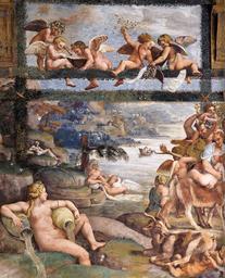 | Keywords: Giulio Romano - River Landscape with Springs - WGA09576.jpg Artwork Creator Giulio Romano between 1526 1528 Fresco Institution Sala di Psyche Palazzo del Tè Mantua object history credit line accession number WGA link 9576 http //www wga hu/art/g/giulio/1pala_te/psyche/4east1 jpg http //www wga hu/html/g/giulio/1pala_te/psyche/4east1 html PD-old-100 painting mythological Italian 1501-1550 Frescos by Giulio Romano River Landscape with Springs Sala di Psiche Palazzo del Tè Mantua 16th-century paintings of angels with humans WGA form painting WGA type mythological WGA School Italian WGA time period 1501-1550 Paintings of rivers People with goats in art 1520s frescos in Italy Putti with flowers 1520s landscape paintings 1520s paintings from Italy 1520s paintings in Italy Mythological paintings of putti Angels in Mantua Paintings of angels in Italy 1520s mythological paintings mythological paintings in Italy |