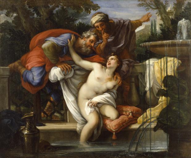Keywords: Giuseppe Bartolomeo Chiari - Susannah and the Elders - Walters 371880.jpg Walters Art Museum artwork Q18748573 Creator Giuseppe Bartolomeo Chiari The biblical book of Daniel tells of Susanna a married woman who is spied upon by two old judges while bathing in her garden They attempt to force themselves upon her saying that if she does not submit they will accuse her of adultery With Daniel's assistance Susanna's innocence is established and the two elders are put to death This painting depicts the unhappy woman as she tries to escape the advances and gazes of the men The focus on her body testifies to her innocence and virtue as truth was often symbolized by a nude woman but was also meant to appeal to male patrons The soft luminous coloring is characteristic of the late Roman baroque style Zeri Italian paintings in the Walters Art Gallery 334 459-460 ca 1700 1727 late Baroque Oil on canvas langswitch bemalte Fläche Painted surface cm 67 3 81 6 accession number 37 1880 5833 Don Marcello Massarenti Collection Rome date and mode of acquisition unknown 1881 catalogue no 211 1897 catalogue no 216 as Cagnacci Henry Walters city Baltimore Walters Art Museum Henry Walters Acquired by Henry Walters with the Massarenti Collection 1902 Hot Dry Men; Cold Wet Women Williams College Museum of Art Williamstown 1993 Going for Baroque The Walters Art Gallery Baltimore 1995-1996 Hot Dry Men Cold Wet Women The Theory for Humors in Western European Art 1575-1700 Joslyn Art Museum Omaha; Arkansas Arts Center Little Rock; The John and Mable Ringling Museum of Art Sarasota 1997-1998 place of origin Rome Italy Walters Art Museum license 2D Baroque paintings in the Walters Art Museum Giuseppe Bartolomeo Chiari Paintings of Susanna and the Elders Media contributed by the Walters Art Museum needs category review |