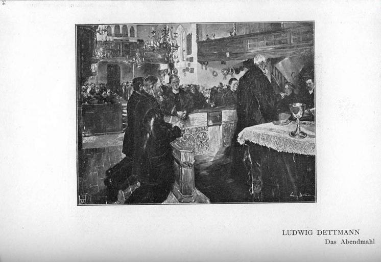 Keywords: Glaspalast München 1901 054.jpg 053 055 Ludwig Dettmann Das Abendmahl http //bsb-mdz12-spiegel bsb lrz de/~db/bsb00002420/image_256 Glaspalast München 1901 Ludwig Dettmann Interiors of churches in art Churchgoing Eucharist in art