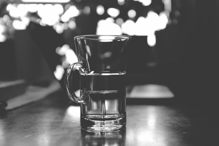Keywords: glass black and white table coffee mug breakfast coffee break