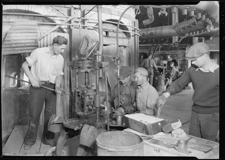 MAKE A MEME View Large Image Original Caption: Millville, New Jersey - Glass bottles. Pressing and shaping in T. C. Wheaton Co, March 1937 U.S. National Archives’ Local Identifier: 69-RP-414 Photographer: Hine, Lewis Subjects: The New Deal Tennessee Valley Authority ...