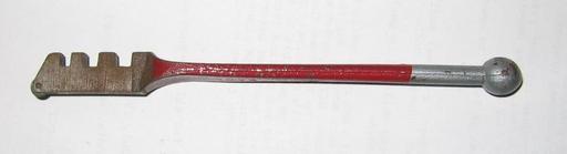 Keywords: Glass cutter.jpg Ordinary glass cutting tool Note hardened cutting wheel notches for snapping and ball on end of handle for tapping 2007-02-28 own assumed Scs Glass cutters