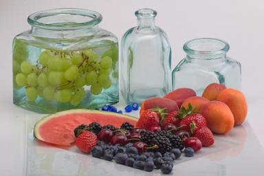 Keywords: glasses apricots berries blueberries grapes still life watermelon