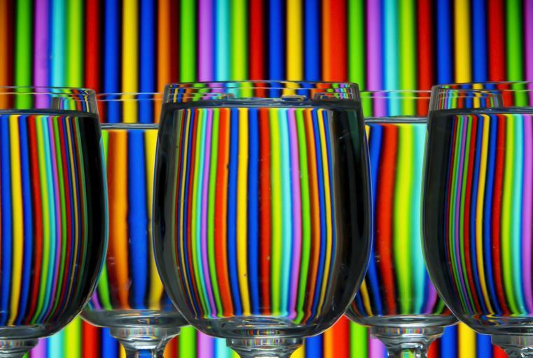 Keywords: glasses cups transparent water clear backgrounds rainbow colors bright colorful reflections vertical lines patterns designs abstracts