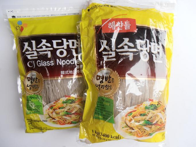 Keywords: 당면 glassnoodels.jpg Korean W cellophane noodles of starch 녹말 ko from sweet potato es 고구마 ko ½ kg and 1 kg bag Own 2011-12-31 Cellophane noodles Noodles from Korea