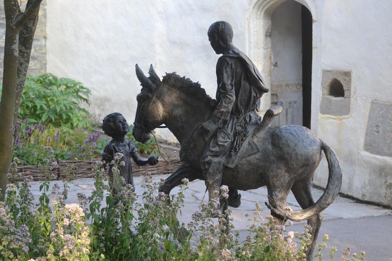 Keywords: glastonbury glastonbury abbey statue great britain england man on donkey