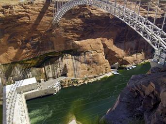 Keywords: glen canyon dam power plant colorado river steel bridge construction arizona usa lake powell page scenery landscape red rocks