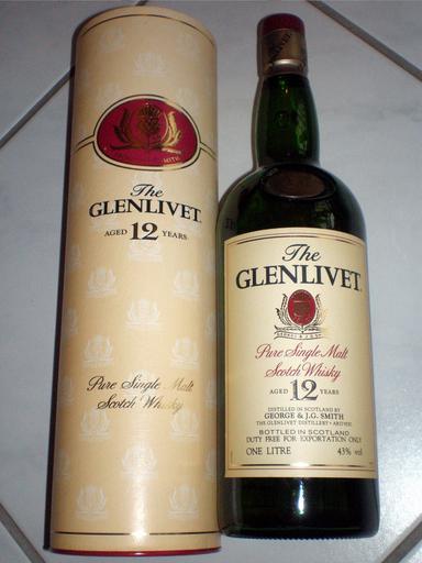 Keywords: Glenlivet bottle.JPG en Glenlivet bottle and can from 1990 12 Year Single Malt de Glenlivet Flasche und Dose von 1990 12 Jahre gereifter Single Malt own Trollhead 07 02 2010 Whisky bottles Glenlivet distillery
