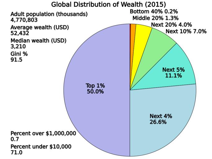Keywords: Global Distribution of Wealth.svg translate yes en Wealth shares of different percentile groups in 2015 Data from Credit Suisse http //publications credit-suisse com/tasks/render/file/index cfm fileid C26E3824-E868-56E0-CCA04D4BB9B9ADD5 Table 6-5 Page 149 2016-07-16 own Delphi234 other versions current annually cc-zero Distribution of wealth Economic inequality SVG pie charts |