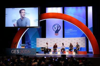 Keywords: global entrepreneurship summit globalentrepreneurshipsummit ges 2016 ges2016 silicon valley siliconvalley entrepreneurship innovators palo alto paloalto stanford university stanforduniversity california President Obama, Facebook CEO Mark Zuckerberg, and three entrepreneurs - Mai Medhat, Jean Bosco Nzeyimana, and Mariana Costa Checa - sit on a panel at the Global Entrepreneurship Summit, held on June 22-24, 2016 at Stanford University in Palo Alto, California. [GES Photo/Public Domain] President Obama, Facebook CEO Mark Zuckerberg, and three entrepreneurs - Mai Medhat, Jean Bosco Nzeyimana, and Mariana Costa Checa - sit on a panel at the Global Entrepreneurship Summit, held on June 22-24, 2016 at Stanford University in Palo Alto, California. [GES Photo/Public Domain]
