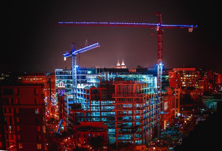 | Keywords: washington dc district columbia construction crane night build building urban city skyline blue red laser lights construct The glowing blue of lights left on at an inactive construction site in Washington, DC contrasts with the dim red hue of the city at night. Dedicated to the public domain with a CC0 license. The glowing blue of lights left on at an inactive construction site in Washington, DC contrasts with the dim red hue of the city at night. Dedicated to the public domain with a CC0 license. |