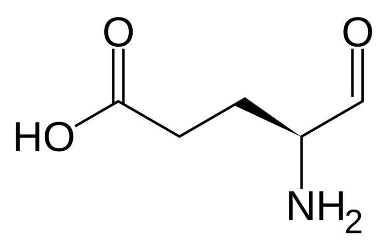 Keywords: Glutamate-1-semialdehyde.svg Skeletal formula of <small>L</small>-glutamate-1-semialdehyde Created using http //www acdlabs com/download/chemsk html ACD/ChemSketch 8 0 and http //www inkscape org Inkscape Own 2007-05-25 Fvasconcellos 21 43 25 May 2007 UTC Aldehydes L-glutamic acid |