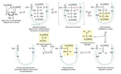 Keywords: Glycolysis4.svg uk еханізм четве тої еакції гліколізу - озщеплення ф уктозо-1 6-бісфосфату до двох фосфот іоз 2012-05-07 own Zlir'a cc-zero Uploaded with UploadWizard Glycolysis Pathway Diagrams in Ukrainian