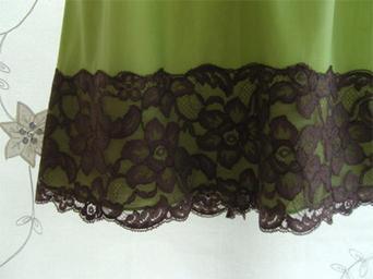Keywords: Alas no longer in production, Glydons of Hollywood was arguably the first lingerie manufacturer in America to make slips that were sexy, rather than just functional. Now, any item made by Glydons commands attention from serious collectors worldwide. Recently sold to an overseas buyer, here we focus on an exquisite lime and chocolate 1950′s vintage half slip by Glydons. It has a double layer of the finest nylon and a 5-inch deep lace hem. The attention to detail and quality of manufacture is clear to see in the photographs, however the true joy is in the wearing. So elegant! |