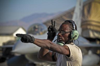 | Keywords: u.s. air force usairforce usaf air national guard airnationalguard ang 113th fighter wing 113thfighterwing virginia ang virginiaang vang f-16c f16c fighting falcon fightingfalcon viper district of columbia districtofcolumbia military photo aircraft combat aviation army air force national guard helicopter mission photography afghanistan iraq matt hecht airforce usa njang 119th 177th 335th 113th 169th c-130 c130 cj-27 cj27 f-16 f16 f-15 f15 a-10 a10 warthog strike eagle black hawk kiowa chinook ch-47 ch47 c-17 c17 c-5 c5 creative commons royalty free public domain photograph digital getty reuters ap depth of field U.S. Air Force Airman First Class Darius Tillman, 455th Expeditionary Maintenance Squadron, marshalls an F-16C Fighting Falcon at Bagram Air Field, Afghanistan on Nov. 6. Tillman is a Virginia Air National Guardsman deployed from the 113th Fighter Wing. U.S. Air Force Airman First Class Darius Tillman, 455th Expeditionary Maintenance Squadron, marshalls an F-16C Fighting Falcon at Bagram Air Field, Afghanistan on Nov. 6. Tillman is a Virginia Air National Guardsman deployed from the 113th Fighter Wing. |