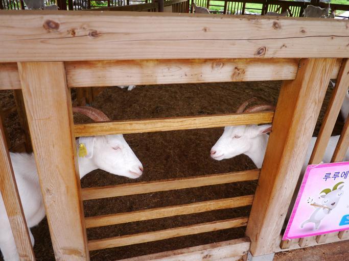 Keywords: goat animal mirror margins baby goats white goat anseong palm plantation outing