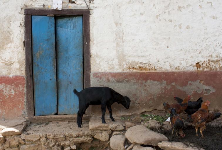 View Original:goat-chickens-building-blue-door-93241.jpg (4088x2767)