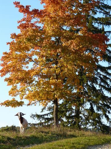 Keywords: goat idyll autumn tree fall color coloring fall leaves fall foliage golden sky leaves red brown yellow red brown