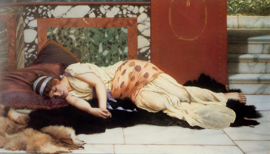 | Keywords: Godward-Endymion-1893.jpg Artwork 1893 Oil on canvas 24 1/2 × 40 3/8 inches 62 5 × 102 7 cm private collection accession number object history credit line http //www artrenewal org/asp/database/contents asp Art Renewal Center Museum http //www artrenewal org/asp/database/image asp id 10755 image 10755 Public domain PD-old-auto 1922 John William Godward 1893 19th-century paintings in unidentified private collections Endymion 1893 oil on canvas paintings 19th-century oil paintings of recumbent women at full length Bear fur-skins in art Paintings of adolescent girls Pictures from the Art Renewal Center Sleeping women in art Wolf fur-skins in art |