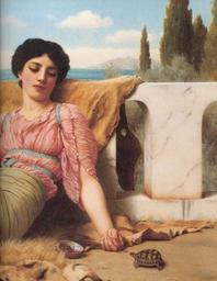 Keywords: Godward-A Quiet Pet-detail-1906.jpg Artwork A Quiet Pet detail John William Godward Creator John William Godward 1906 oil canvas 20 × 30 inches 50 9 × 76 2 cm Collection of Fred and Sherry Ross http //www artrenewal org/asp/database/contents asp Art Renewal Center Museum http //www artrenewal org/asp/database/image asp id 9524 image 9524 Public domain <gallery>File The quiet pet by John William Godward jpg</gallery> PD-old-auto 1922 1906 paintings Tortoises in art Oil paintings of females Paintings of adolescent girls Collection of Fred and Sherry Ross Details of paintings Paintings of women with animals Eyelids Colorful background Watching in art Female arms in art People with animals in art Colorful clothing female People with plants Females looking down in art Paintings of sitting women Lion fur-skins in art Paintings by John William Godward with fur Pictures from the Art Renewal Center |