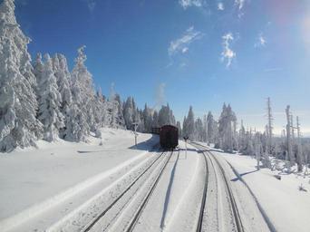 Keywords: Bahnhof Goetheweg im Winter.JPG de Ein Zug der Harzer Schmalspurbahnen auf dem Stumpfgleis des ehemaligen Bahnhofs Goetheweg kurz nach einer Zugkreuzung 2015-02-06 14 41 00 own Gapcf other versions cc-zero Uploaded with UploadWizard Bahnhof Goetheweg