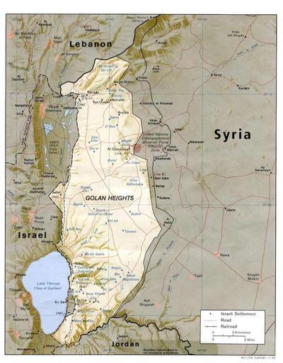 Keywords: Golan heights rel89B.jpg I created this image myself by modifying the existing Image Golan_heights_rel89A jpg which was itself a modified version of a modified CIA and hence public domain Image Golan_92 jpg Previous modifications were done to provide a map that was impartial about the contentious issue of which country owns the Golan Heights The previous modifications were effective in creating a neutral map by removing the names Syria and Israel from the contentious territory and left only the label Golan Heights The present modification was intended solely to restore the names and locations of villages that were included on the original CIA map but had been inadvertently moved or erased by relocating the country titles Due to the recurrent conflict involving villages and settlements within the Golan Heights I feel that it is important to retain the locations on the map As with the earlier modifications of this file I hope that this modification will be seen as a fair compromise that also maintains the cartographical accuracy of map I make no copyright claim on my modification; its copyright status is the same as its source dp_roberson 15 44 21 October 2007 UTC en wikipedia 2007-09-21 Dp roberson wikipedia en Dp roberson original upload log page en wikipedia Golan_heights_rel89B jpg 2008-12-29 03 13 <bdi>كهيعص</bdi> 1022×1308× 236080 bytes <nowiki>added 4 villages to the map </nowiki> 2007-09-21 15 45 Dp roberson 1022×1308× 226330 bytes <nowiki>I created this image myself by modifying the existing Image Golan_heights_rel89A jpg which was itself a modified version of a modified CIA and hence public domain Image Golan_92 jpg Previous modifications were done to provide a map that was impartia</nowiki> Maps of the Golan Heights |