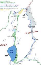 Keywords: GolanBorders.svg ar الحدود وخطوط الهدنة التاريخية والحالية في منطقة هضبة الجولان منذ 1923 en A map in Arabic of current and historical borders and ceasefire lines in the Golan Heights region from 1923 Own Drork 2008-09-01 Maps of the Golan Heights Note about accuracy The borders' location and pattern are good approximation according to different resources but they are not meant to be completely accurate It is particularly hard to determine whether the areas of Al-Hamma Hamat Gader and Kibbutz Ein Gev on the southeastern shore of the Sea of Galilee were part of one Demilitarized Zone or whether each of these localities lied next to two separated Demilitarized zones ملاحظة بشأن دقة المعلومات تعكس مواضع الحدود ومساراتها مجرد التقريب |