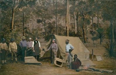 Keywords: Gold diggers Queensland.jpg en Gold diggers sale Queensland albumen photograph overpainted in oil on canvas 39 2 x 60 7 cm http //www nla gov au/apps/cdview pi nla pic-an5776553 fullrecord yes Gold diggers sale Queensland held at the National Library of Australia Richard Daintree 1832-1878 between 1864 1870 PD-Australia Australian gold rushes Rockhampton Queensland |