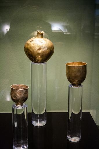 Keywords: Golden bottle and goblets.jpg Artwork gold Institution Pushkin Museum object history Discovered by Schliemann in Troy credit line accession number 4; 6; 7 own photo by Szilas in the Pushkin Museum Moscow PD-old-100 Treasures from Troy in the Pushkin Museum Priam's treasure |