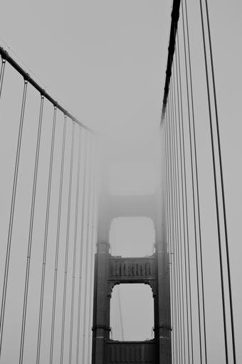 Keywords: golden gate bridge san francisco usa america famous building fog mist suspension cables pillar architecture travel tourism structure transportation metal monument landmark engineering historic