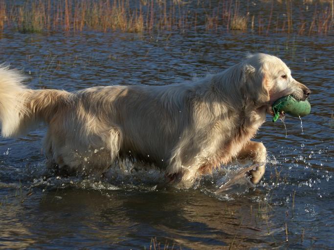 Keywords: golden retriever dog pet animal animals swimming water animal nature water stately