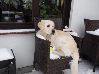 Keywords: golden retriever dog snow ginger of golden heathland