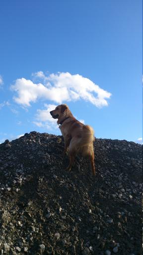 Keywords: golden retriever male play animal dog sunny cloud mindful seeking guard dog wind fond of animals stones mountain fur lovely