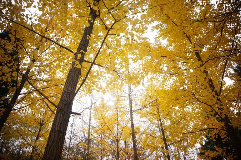 Keywords: golden yellow ginkgo ginkgo trees autumn tree woods