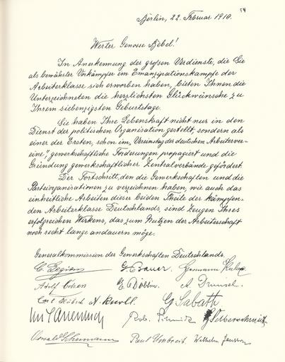 Keywords: Goldenes Buch zum 70. Geburtstag August Bebel 1910 Seite 054.jpg Goldenes Buch zum 70 Geburtstag August Bebel 1910 Seite_ jpg 053 055 Glückwunschschreiben zum 70 Geburtstag von August Bebel Generalkommission der Gewerkschaften Deutschlands August Bebel zum siebzigsten Geburtstag 22 Februar 1910 / mit einer Nachbemerkung von Ursula Herrmann Reprint des Unikats aus dem Zentralen Parteiarchiv der SED Dietz Verlag Berlin 1989 Lizenzausgabe Saur 1989 ISBN 3-598-07256-2 self scanned from own book 1910 Diverse Goldenes Buch zum 70 Geburtstag August Bebel 1910 PD-old-70-1923 |