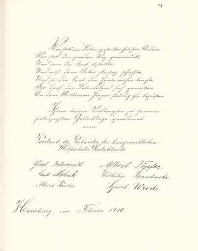 Keywords: Goldenes Buch zum 70. Geburtstag August Bebel 1910 Seite 058.jpg Goldenes Buch zum 70 Geburtstag August Bebel 1910 Seite_ jpg 057 059 Glückwunschschreiben zum 70 Geburtstag von August Bebel Vorstand des Verbandes der baugewerblichen Hilfsarbeiter Deutschlands August Bebel zum siebzigsten Geburtstag 22 Februar 1910 / mit einer Nachbemerkung von Ursula Herrmann Reprint des Unikats aus dem Zentralen Parteiarchiv der SED Dietz Verlag Berlin 1989 Lizenzausgabe Saur 1989 ISBN 3-598-07256-2 self scanned from own book 1910 Diverse Goldenes Buch zum 70 Geburtstag August Bebel 1910 PD-old-70-1923 |