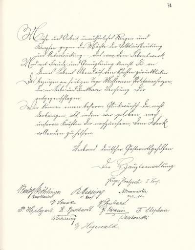 Keywords: Goldenes Buch zum 70. Geburtstag August Bebel 1910 Seite 073.jpg Goldenes Buch zum 70 Geburtstag August Bebel 1910 Seite_ jpg 072 074 Glückwunschschreiben zum 70 Geburtstag von August Bebel Hauptverwaltung des Verbandes deutscher Gastwirtsgehilfen August Bebel zum siebzigsten Geburtstag 22 Februar 1910 / mit einer Nachbemerkung von Ursula Herrmann Reprint des Unikats aus dem Zentralen Parteiarchiv der SED Dietz Verlag Berlin 1989 Lizenzausgabe Saur 1989 ISBN 3-598-07256-2 self scanned from own book 1910 Diverse Goldenes Buch zum 70 Geburtstag August Bebel 1910 PD-old-70-1923 |