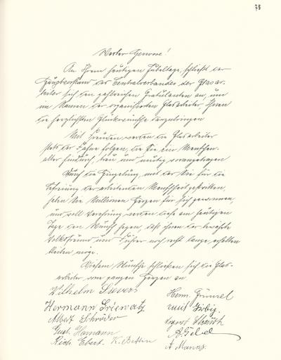 Keywords: Goldenes Buch zum 70. Geburtstag August Bebel 1910 Seite 075.jpg Goldenes Buch zum 70 Geburtstag August Bebel 1910 Seite_ jpg 074 076 Glückwunschschreiben zum 70 Geburtstag von August Bebel Hauptvorstand des Centralverbandes der Glasarbeiter August Bebel zum siebzigsten Geburtstag 22 Februar 1910 / mit einer Nachbemerkung von Ursula Herrmann Reprint des Unikats aus dem Zentralen Parteiarchiv der SED Dietz Verlag Berlin 1989 Lizenzausgabe Saur 1989 ISBN 3-598-07256-2 self scanned from own book 1910 Diverse PD-old-70-1923 Goldenes Buch zum 70 Geburtstag August Bebel 1910 |